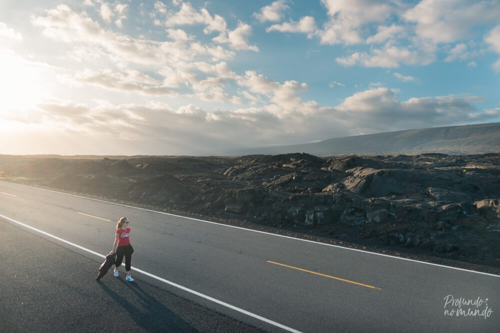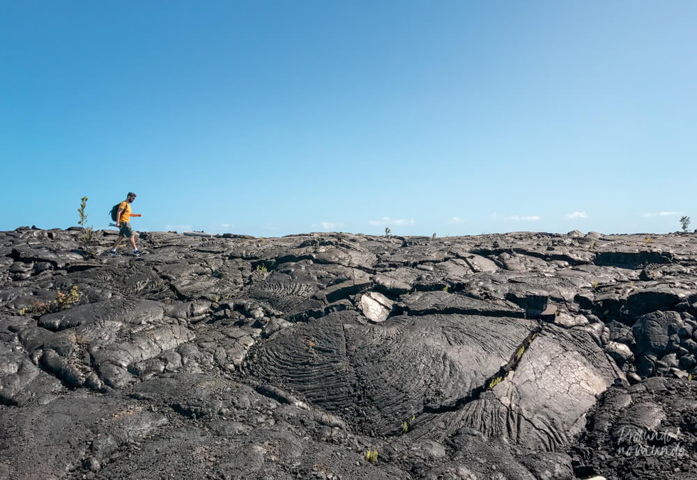 São cerca de 300m em um caminho inteiro coberto de lava seca, resultado de uma série de erupções do vulcão Kilauea entre 1983 e 1990.