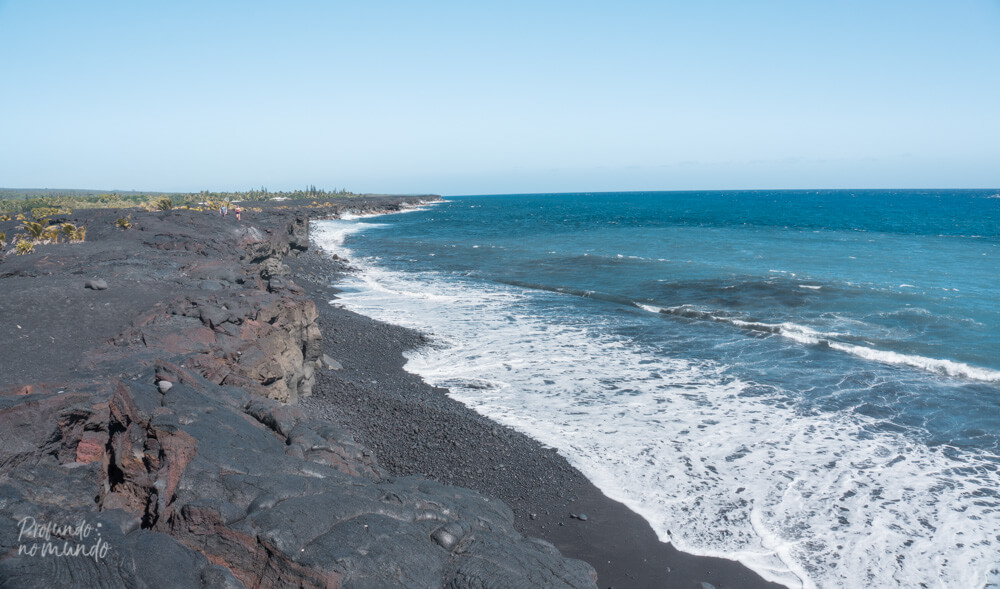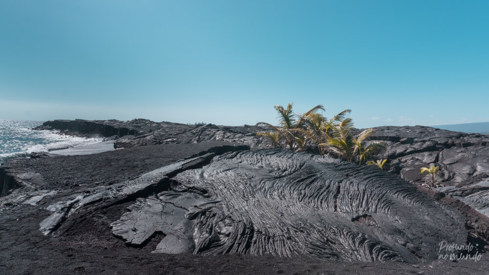 Existem várias “Black Sand Seaches” no Havaí, que nada mais são do que praias de areia preta! E, sim, a areia dessas praias é preta mesmo, resultado da erosão das pedras vulcânicas próximas da costa. Se você pegar a areia e olhar bem de perto, consegue enxergar os pedacinhos pequenos de pedrinha vulcânica.